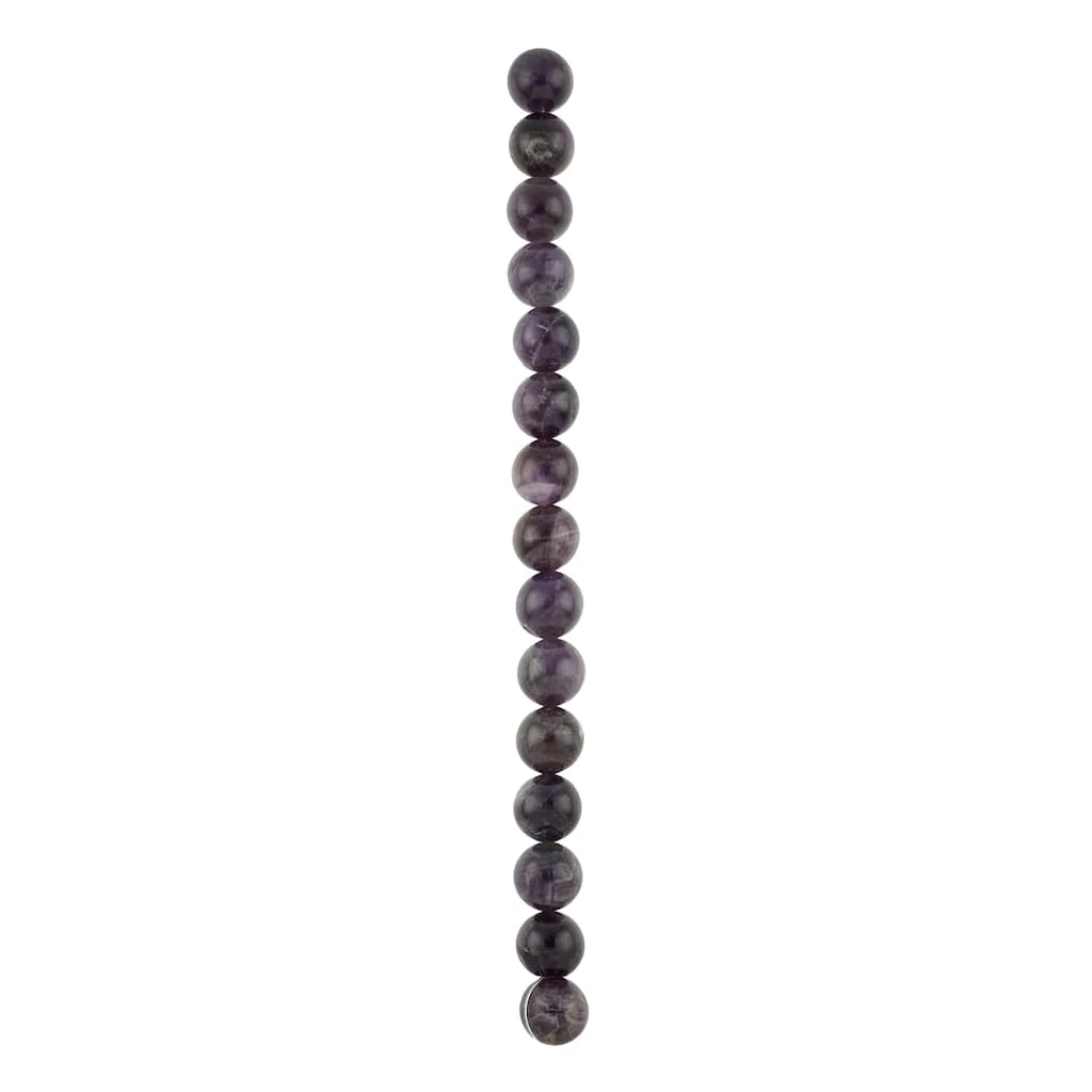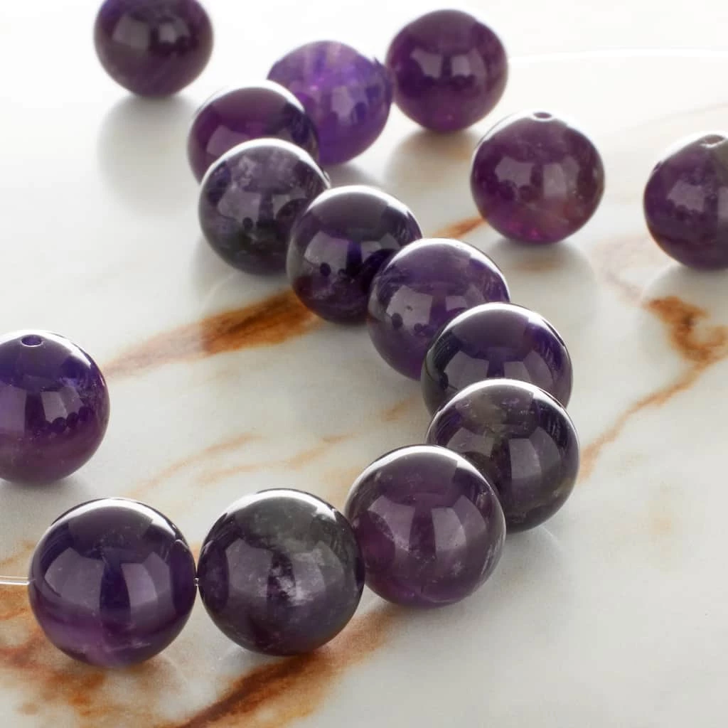 These striking round amethyst beads will add eye-catching appeal to your accessory creations. On their own or mixed with complimentary stones and charms, these beads will make lovely necklaces, bracelets and earrings and are also a wonderful accent for home dรฉcor projects and other crafts.