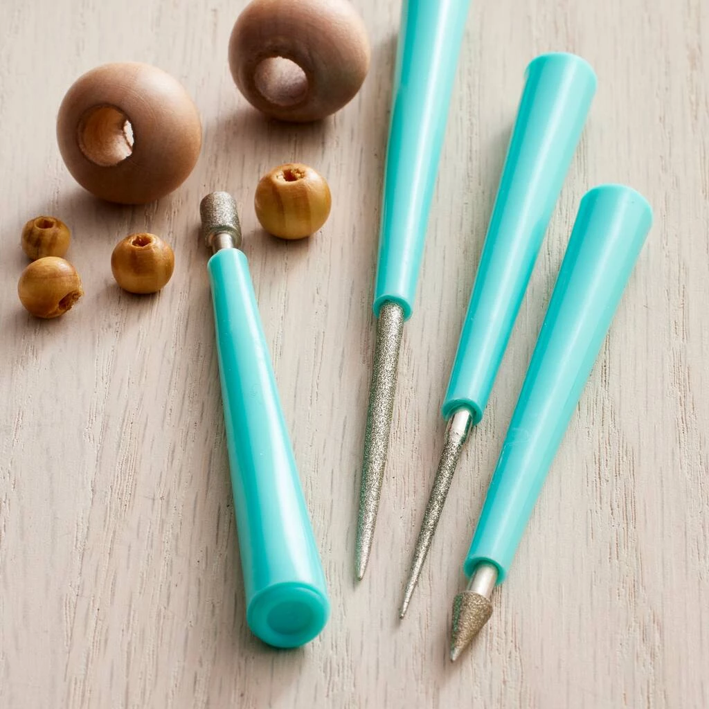 These diamond tipped, plastic handle reamers are used to enlarge bead holes or smooth out rough edges. This set contains 4 different tip sizes, which are helpful, depending on the project need.