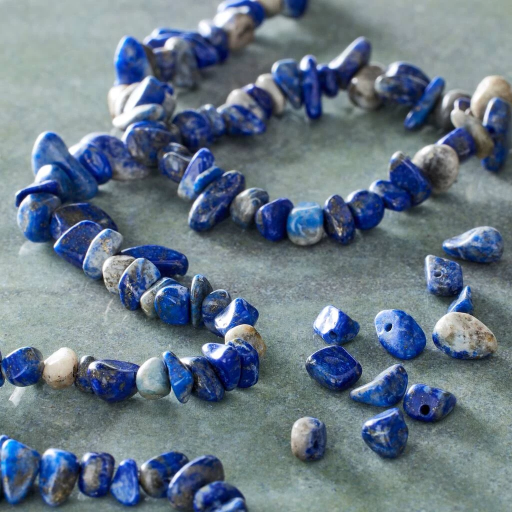 These lapis chips feature beautiful textured colors and can be used alone or combined with other beads or a pendant to complete your one-of-a-kind design. Make unique bracelets, necklaces and keychains for your friends and family.