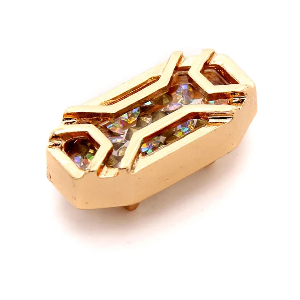 This gold colored with clear gem accents inside the slider charm will be a stunning addition to your jewelry collection. Slide this AB Octagon charm on a Charmalong leather band to create a fun accessory. You can combine with other spacers and charms to make a bold statement piece.