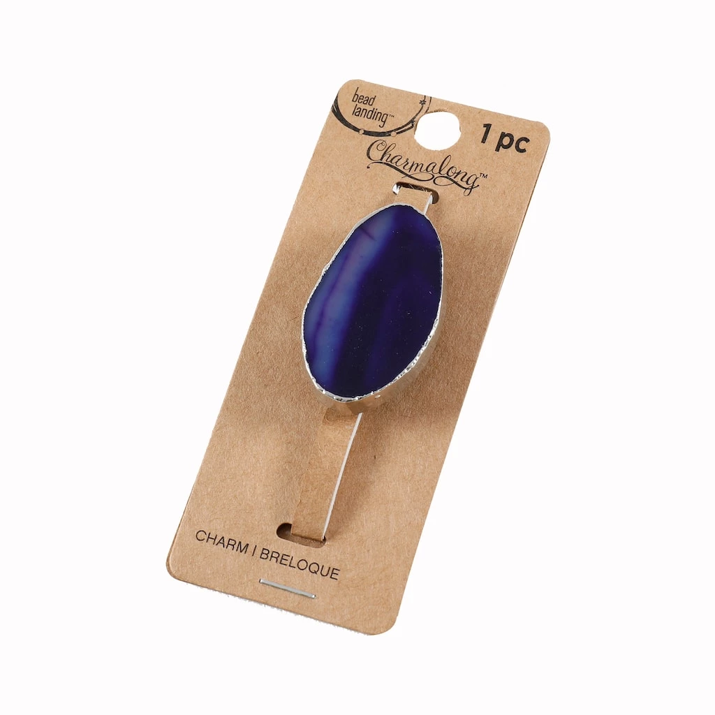 This purple agate slice slider charm will be a stunning addition to your jewelry collection. Slide this agate charm on a Charmalong leather band to create a fun accessory. You can combine with other spacers and charms to make a bold statement piece.