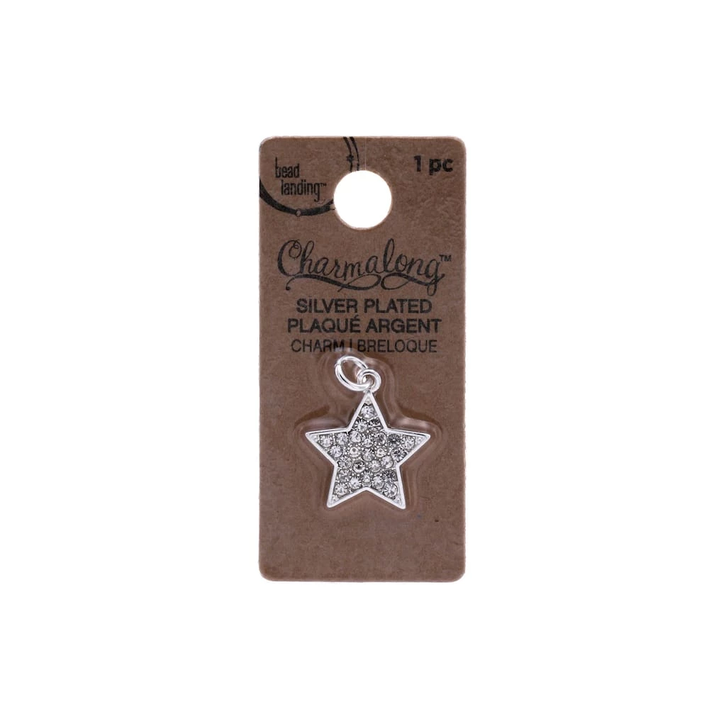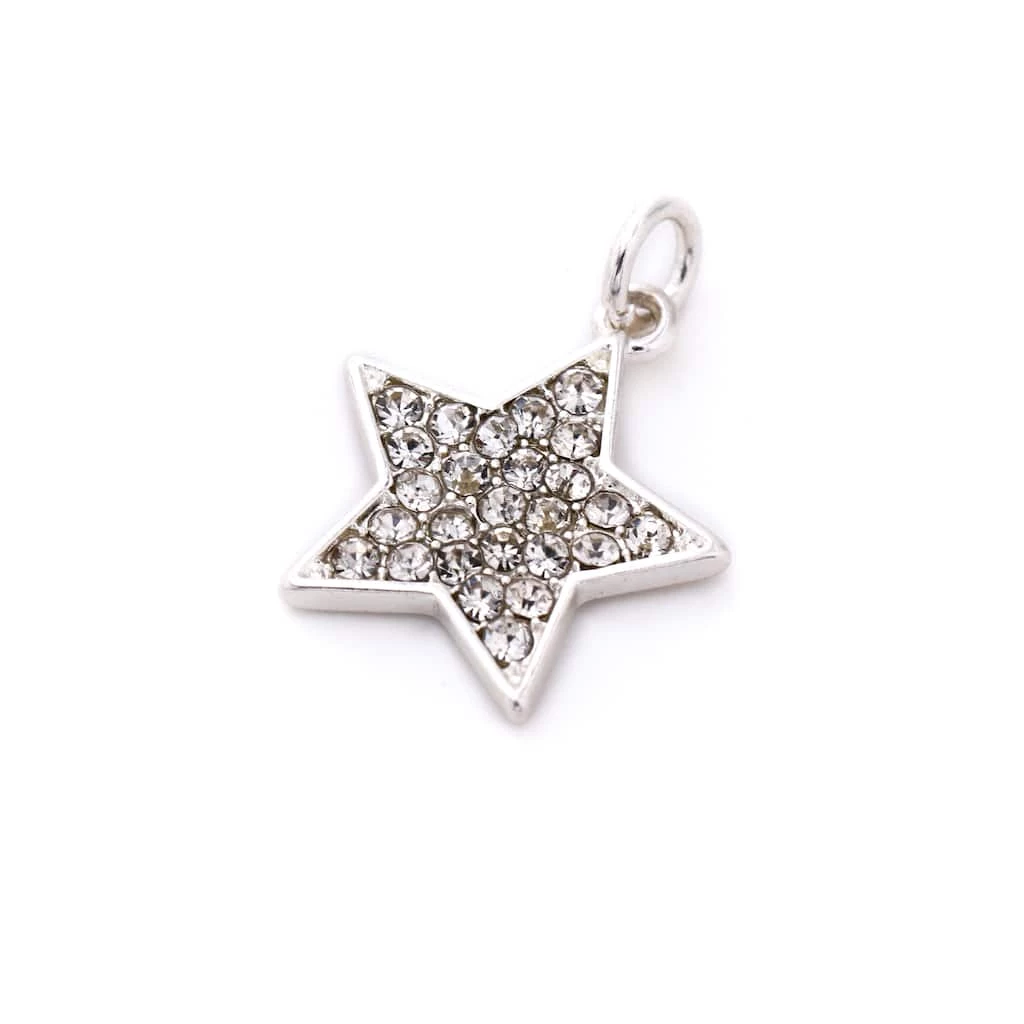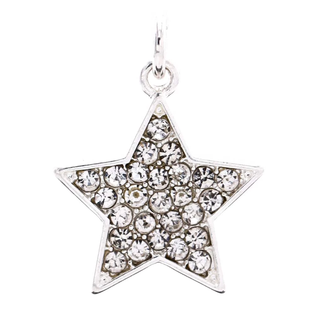 This silver plated with stone paved accent star charm will be a stunning addition to your jewelry collection. Place this star charm on a Charmalong bracelet to create a fun accessory. You can combine with other spacers and charms to make a bold statement piece.