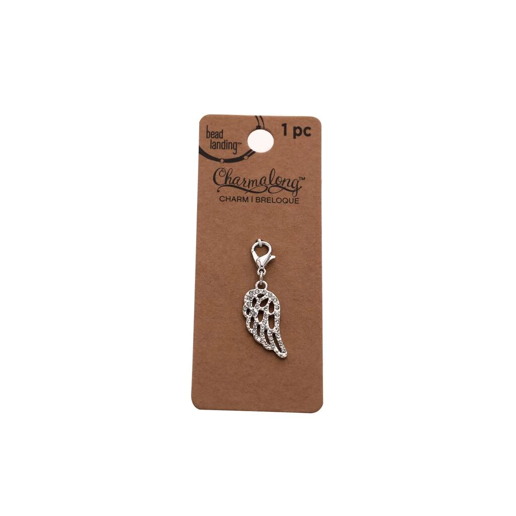 Add this wing charm to customize your jewelry. It features a pave setting of stones to add to its appearance. This charm has a lobster clasp that will allow it to easily attach to a necklace chain.