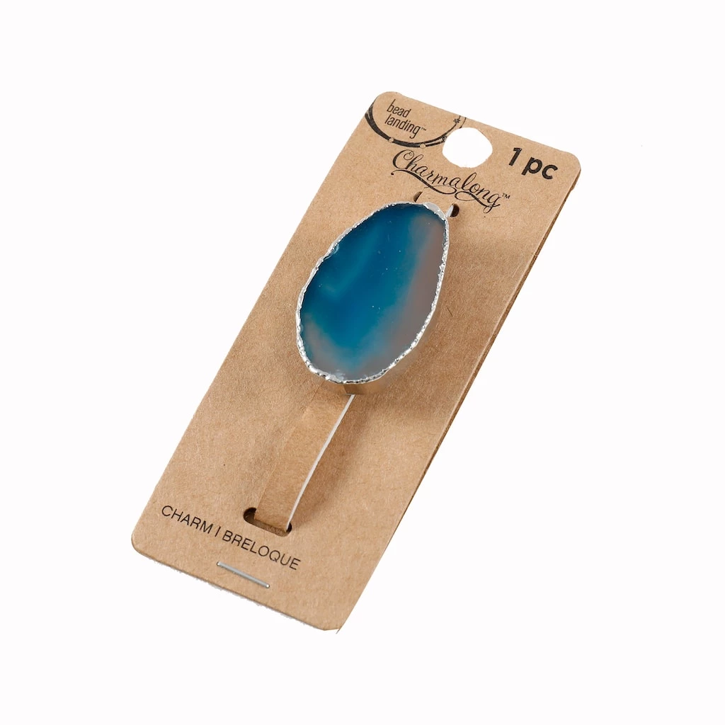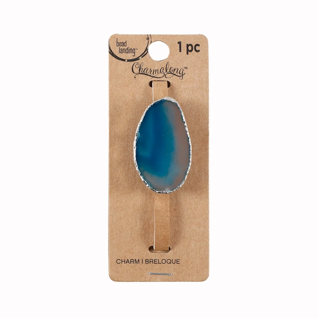 This turquoise agate slice slider charm will be a stunning addition to your jewelry collection. Slide this agate charm on a Charmalong leather band to create a fun accessory. You can combine with other spacers and charms to make a bold statement piece.