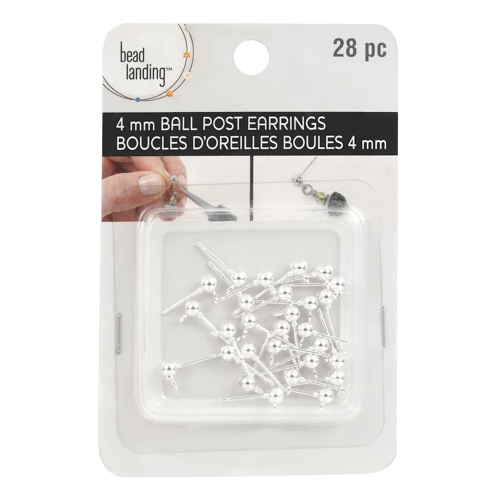 Earring findings are important to a finished design because they determine how the earring will hang. This earring post has a ball on the top with a loop for attaching various drops to create an assortment of appealing “looks.”