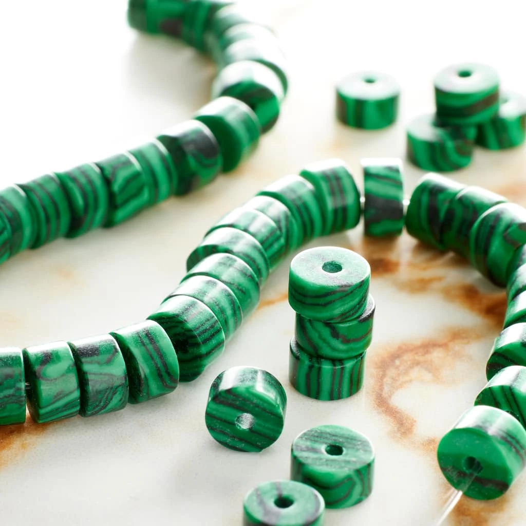 These lovely reconstituted malachite beads are sure to be a great addition to your DIY projects. Whether you craft a bracelet or earrings, these round heishi semi-precious beads will make your designs stand out.