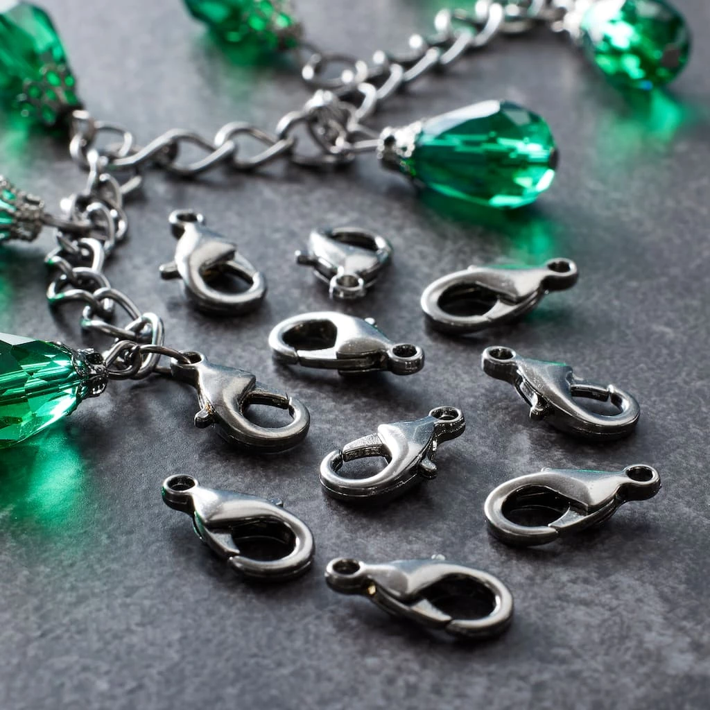 Lobster claws make great closures for necklaces, bracelets and anklets. These clasps are a dark gray, so they look great when paired with gray or black beads, chains or pendants.