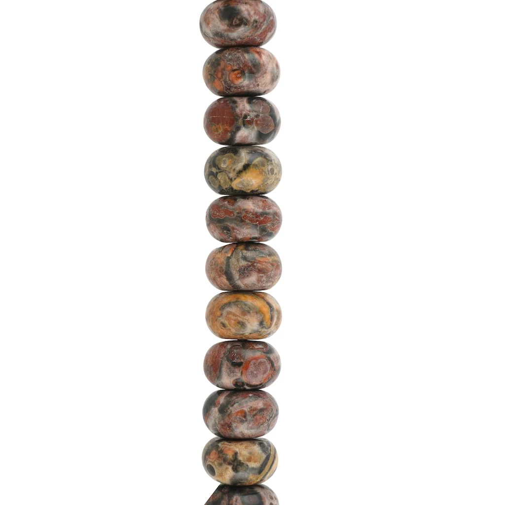 These striking leopard jasper rondelle beads will add eye-catching appeal to your accessory creations. On their own or mixed with complimentary stones and charms, these beads will make lovely necklaces, bracelets and earrings and are also a wonderful accent for home dรฉcor projects and other crafts.