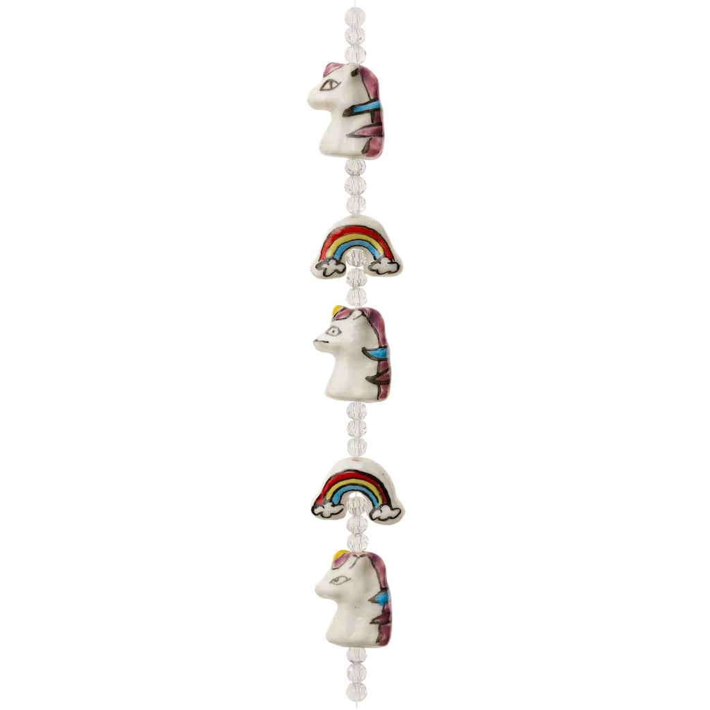 These rainbow and unicorn beads will make beautiful embellishments for jewelry or arts and crafts projects. Combine them with spacers to create a cute bracelet.