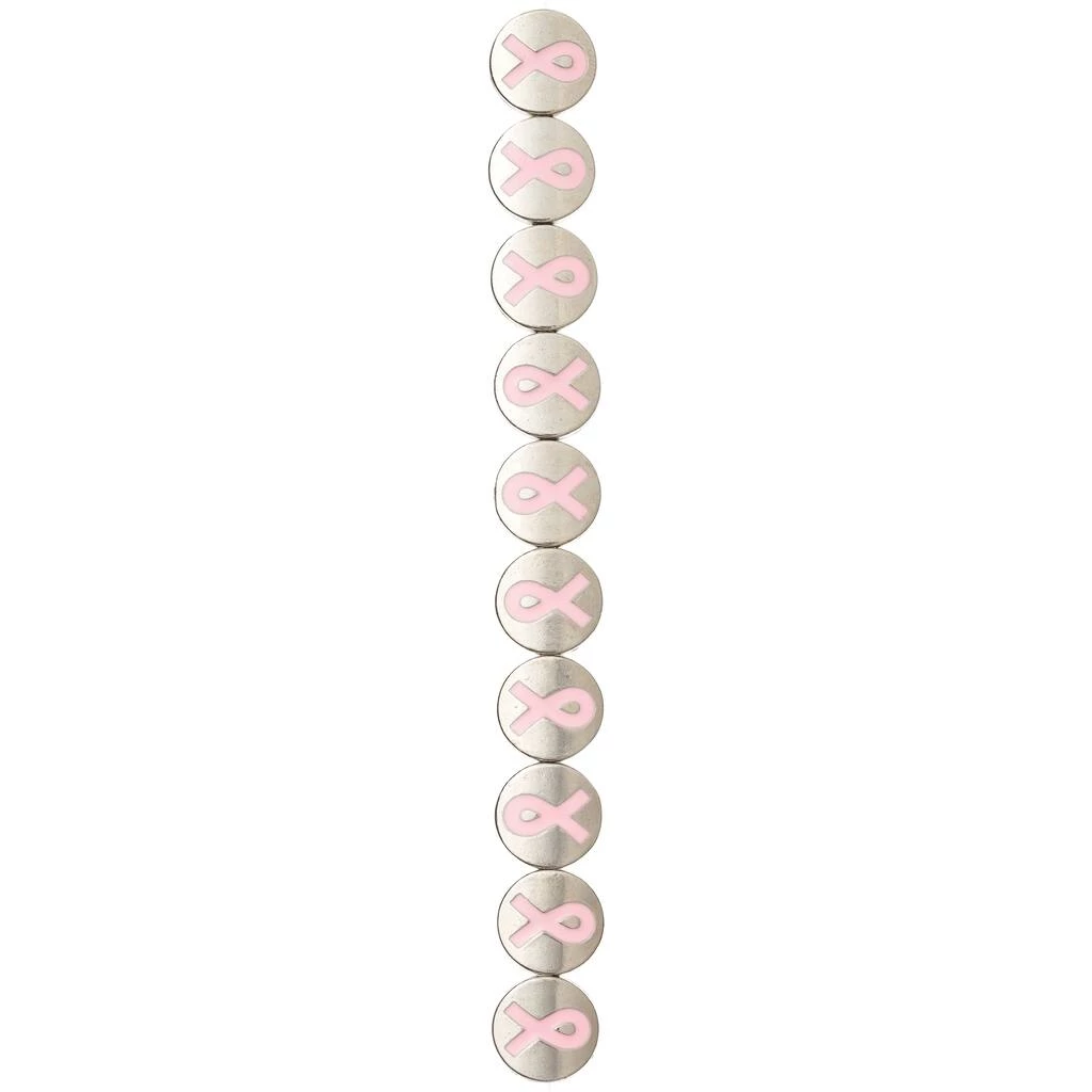 Express your support for women battling breast cancer by wearing a bracelet made of these pink ribbon lentil beads. You can pair these metal beads from Bead Landing with pink rice pearls.