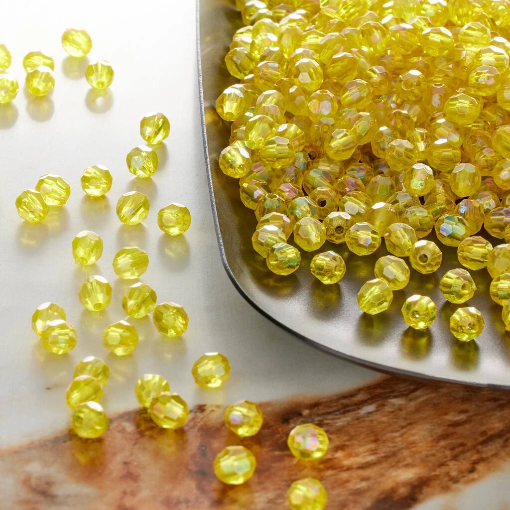 These faceted acrylic round beads with an aurora borealis finish will add a nice iridescent shimmer to your craft and accessory creations. On their own or mixed with complimentary stones and charms, these beads will make lovely necklaces, bracelets and earrings and are also a great accent for home décor projects and other crafts.