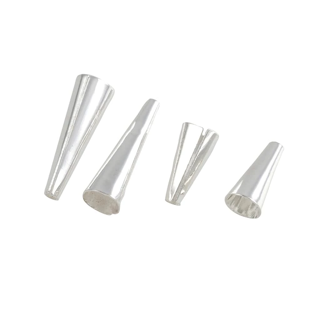 Use these silver bead cones featuring a smooth finish from Bead Landing to make customized necklaces, bracelets, earrings and much more. Team them with colorful beads to craft jewelry that complements your favorite outfits perfectly. The bead cones are ideal for covering crimped or glued ends or knots.