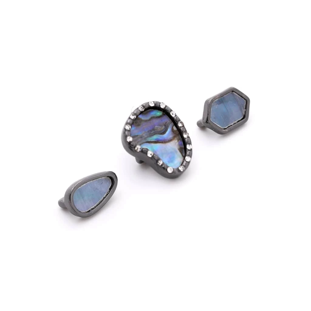 These abalone with hematite slider charms will be a stunning addition to your jewelry collection. Slide these shell loving charms on a Charmalong leather band to create a fun accessory. You can combine with other spacers and charms to make a bold statement piece.