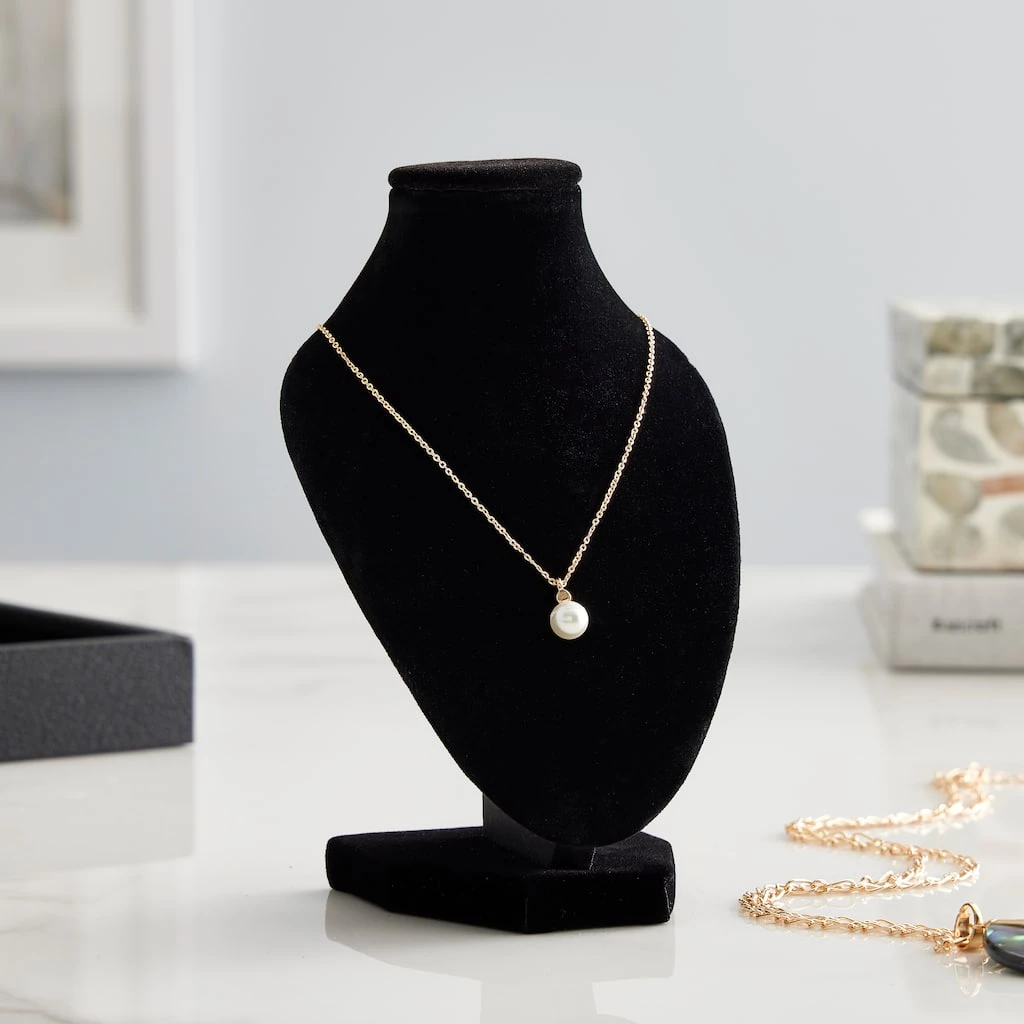 Elegantly display your fashionable beads, chains and costume jewelry on this stand! This velvet necklace stand provides a stylish backdrop for displaying short length necklaces.