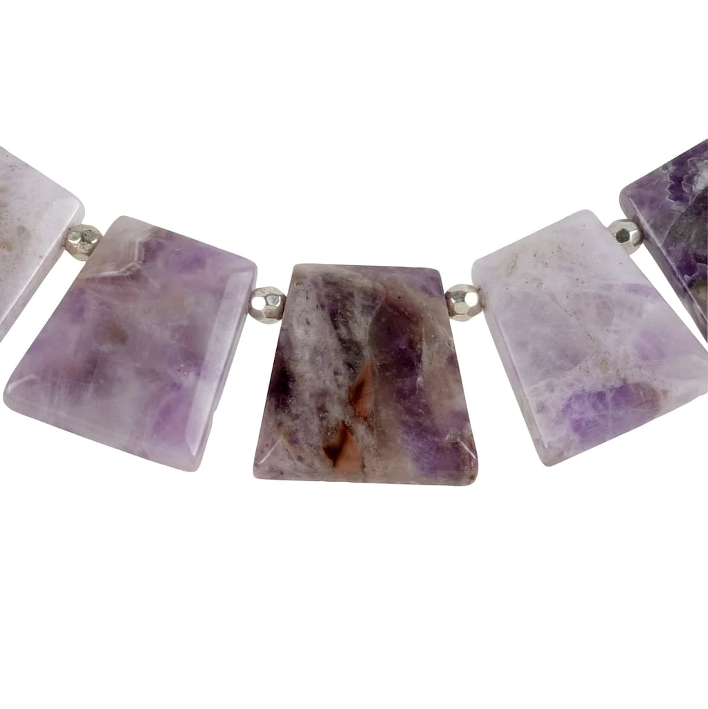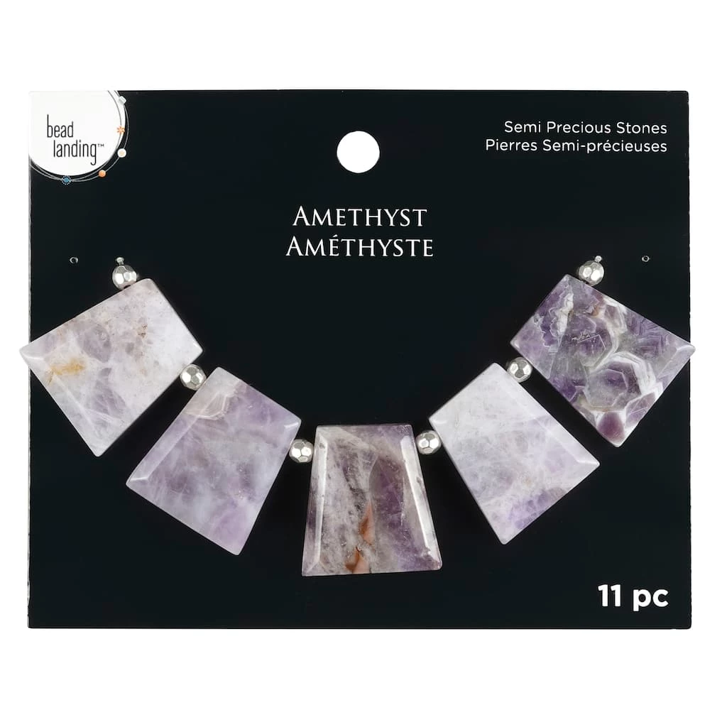 Design a beautiful necklace with these amethyst trapezoid beads. These semi-precious beads are paired with a unique spacer beads that will be perfect to use for your DIY jewelry.