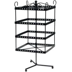 Keep all your earrings neatly organized and within easy view! This four-sided black metal earring rack spins on a center axis, so it is easy to pick out just the pair you need.