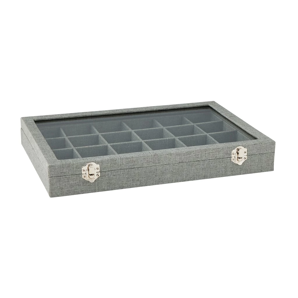 Organize your jewelry neatly in this lovely gray tray by Bead Landing. You can use its tiny compartments to store your earrings, charms, rings and beads. This elegant fabric-covered wooden box also makes the perfect birthday present for a loved one.
