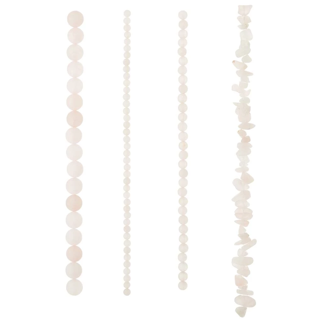 These unique round and nugget-shaped rose quartz beads are perfect for crafting bracelets, necklaces, and other cool accessories. Pair the finished project with a stylish outfit to complete the look.