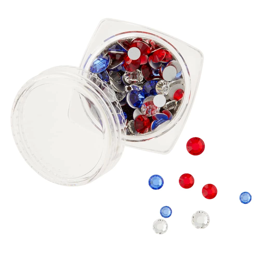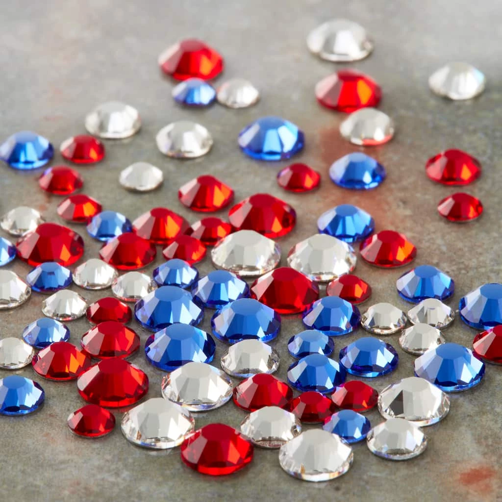 Perfect for many DIY projects, this pack of assorted patriotic crystals will make your designs stand out. Personalize shoes, accessories and more with these glass stylish flatback crystals.