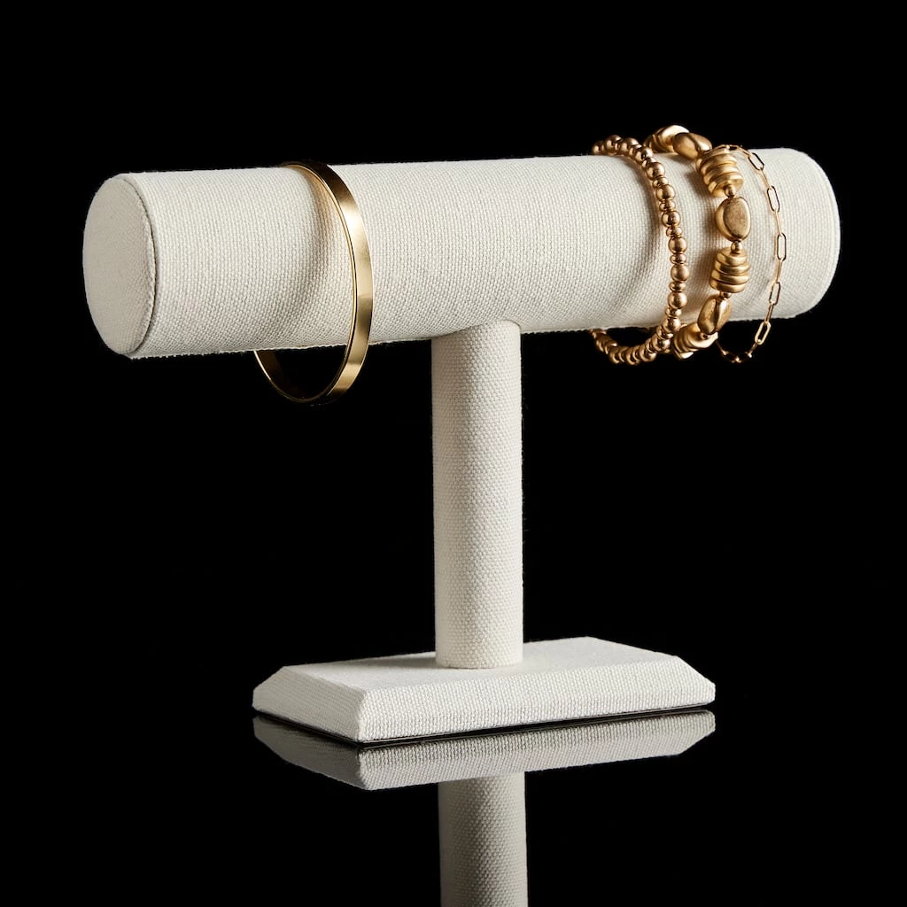 Keep your favorite jewelry organized using this white canvas stand. It is ideal for displaying your watches, bracelets, bangles and more.