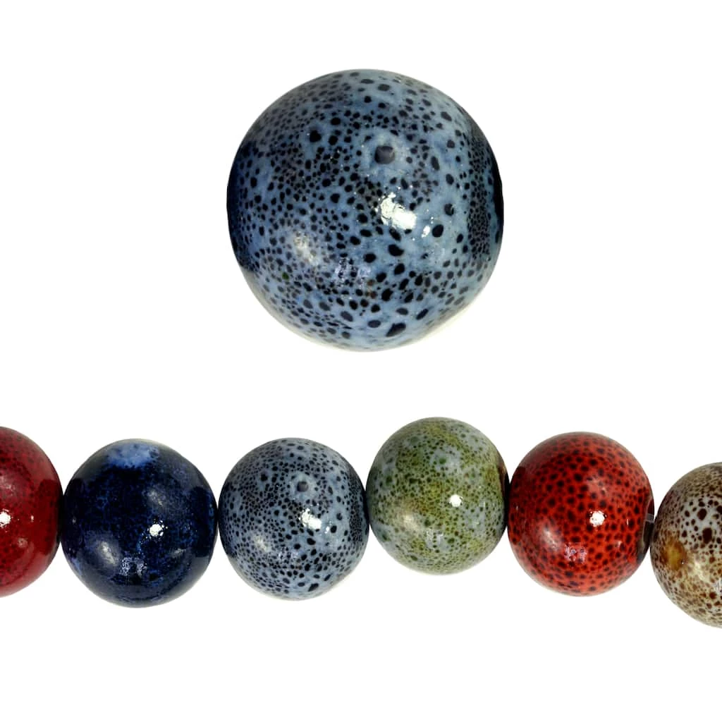 Ideal for all your jewelry making and beading projects, these round ceramic beads are perfect for creating your own personal designs. Kiln-fired ceramic shines with naturally warm colors and will bring luster to jewelry pieces.
