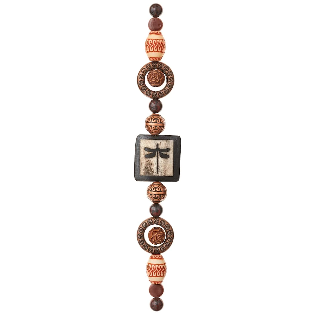 This glass bead mix is perfect for bringing a natural amber color to your own jewelry designs. This string includes 15 beads of various sizes, colors and patterns all focused around the one large dragonfly bead. Use with any cord like stretch cord for easy bracelets, nylon cord for beginner jewelry designs or tigertail for more advanced projects.