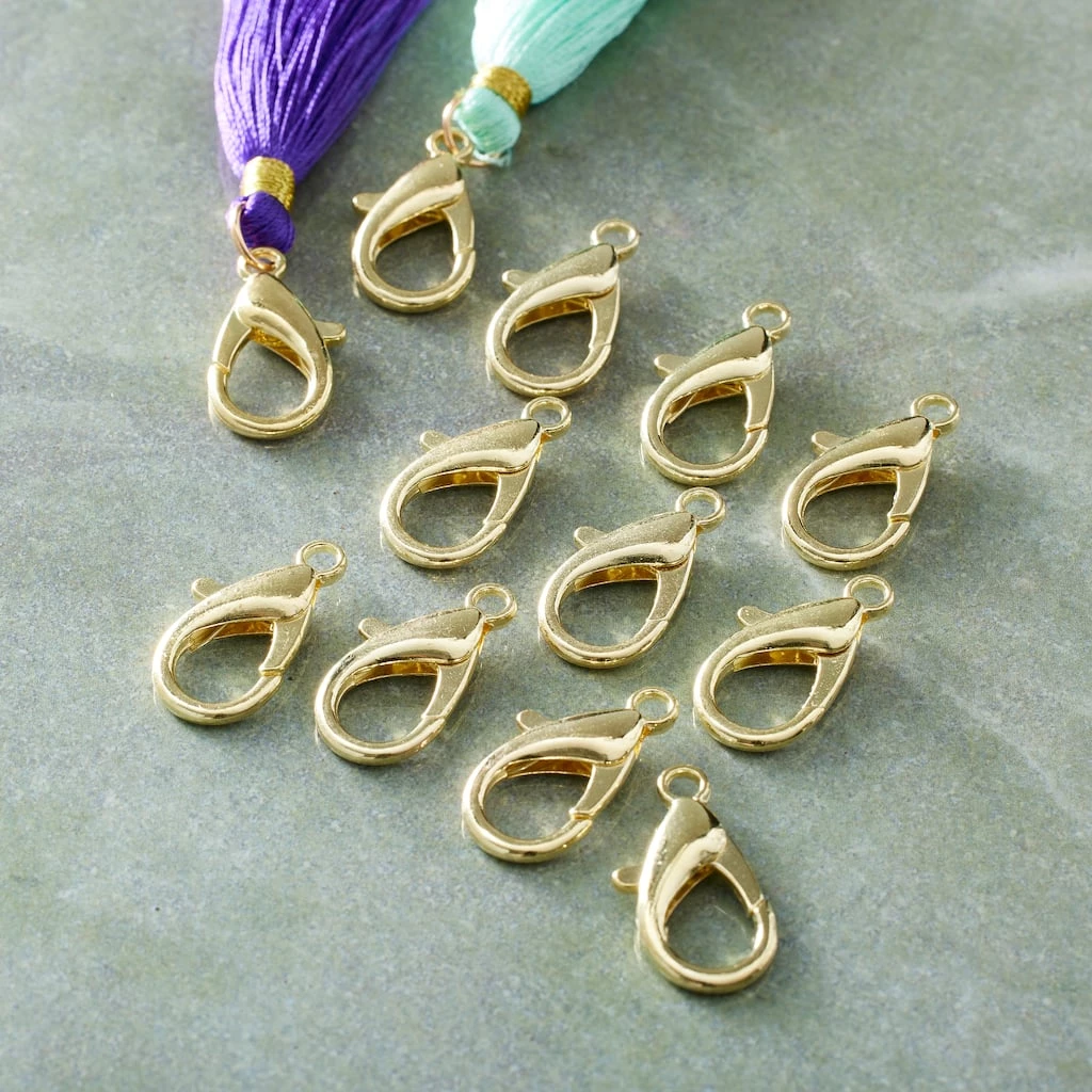 Lobster claps hold bracelets and necklaces together securely and stylishly. This type of clasp is held closed by a spring and can be opened by pulling a small lever.
