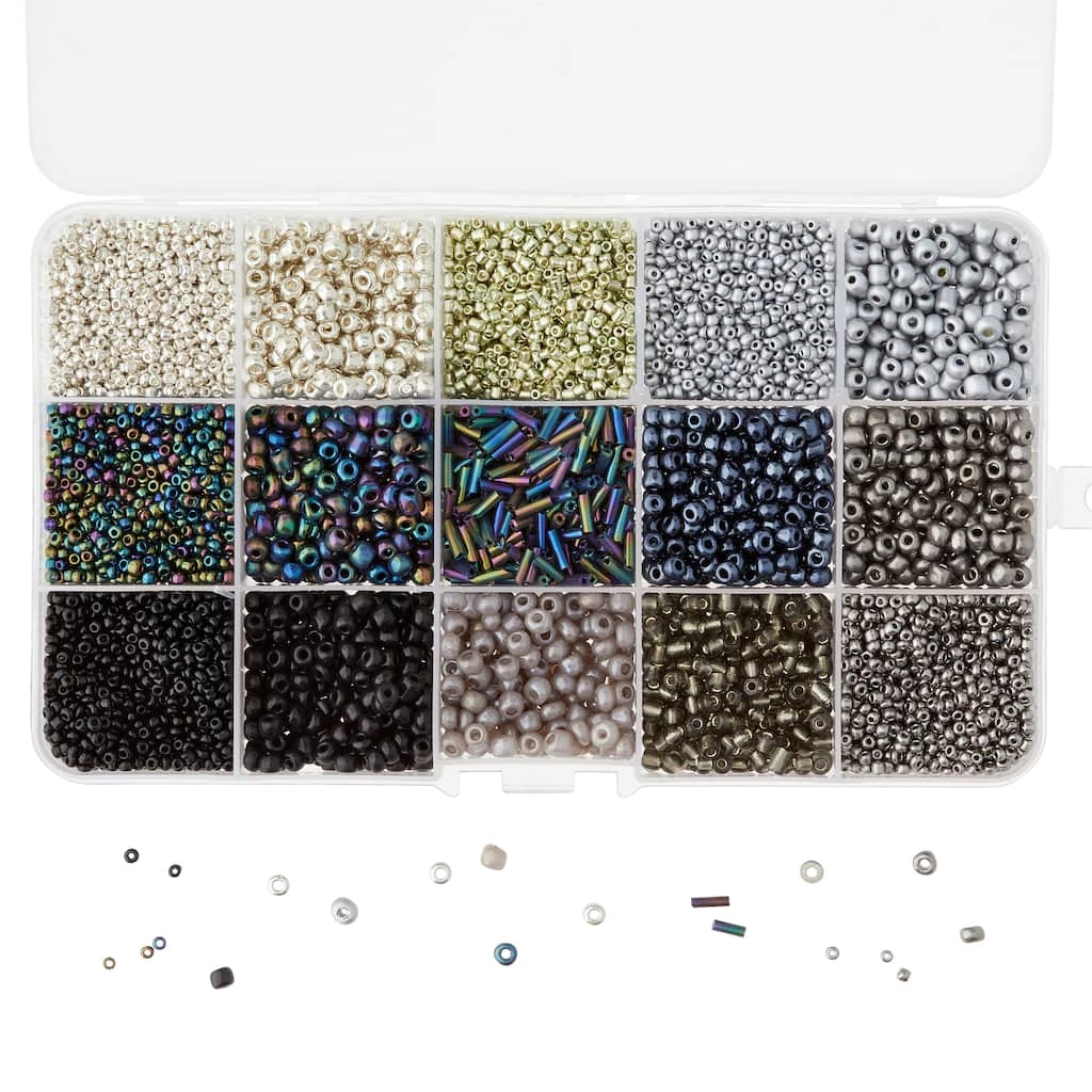 For all your jewelry making and beading projects, this black and silver mix pack contains a wide assortment of dazzlingΒ glass seed beads. Use these black and silver colored mix style beads to design necklaces and bracelets, adorn clothing, embellish cards or scrapbooks, decorate everyday items and much, much more!