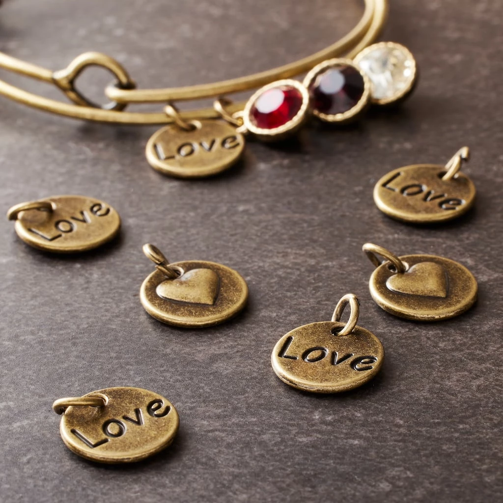Gift your loved one a personalized bracelet or necklace using these charms. You can use a single heart charm as a pendant or string the charms together on a bangle to create a rustic bracelet.