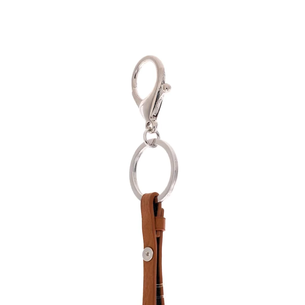 Keep all of your keys organized and together with this classic brown and silver keychain. The simplistic look will go with whatever you are wearing for the day, and can be clipped to a purse or wallet.