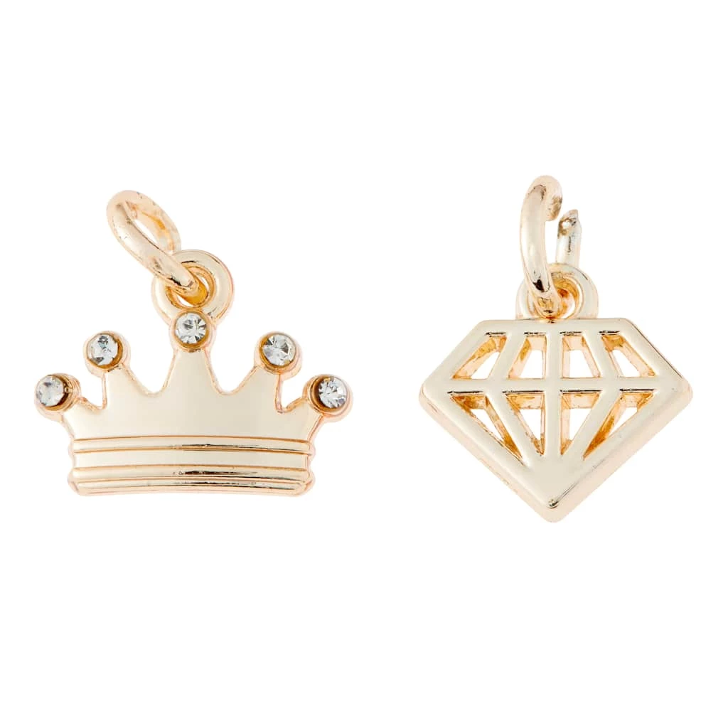 Show off your royal side with this cute charm set. Great for the queens in your life, this adorable charm set is perfect for making keychains, bracelets and other jewelry designs. You can easily attach them with their lobster clasps.