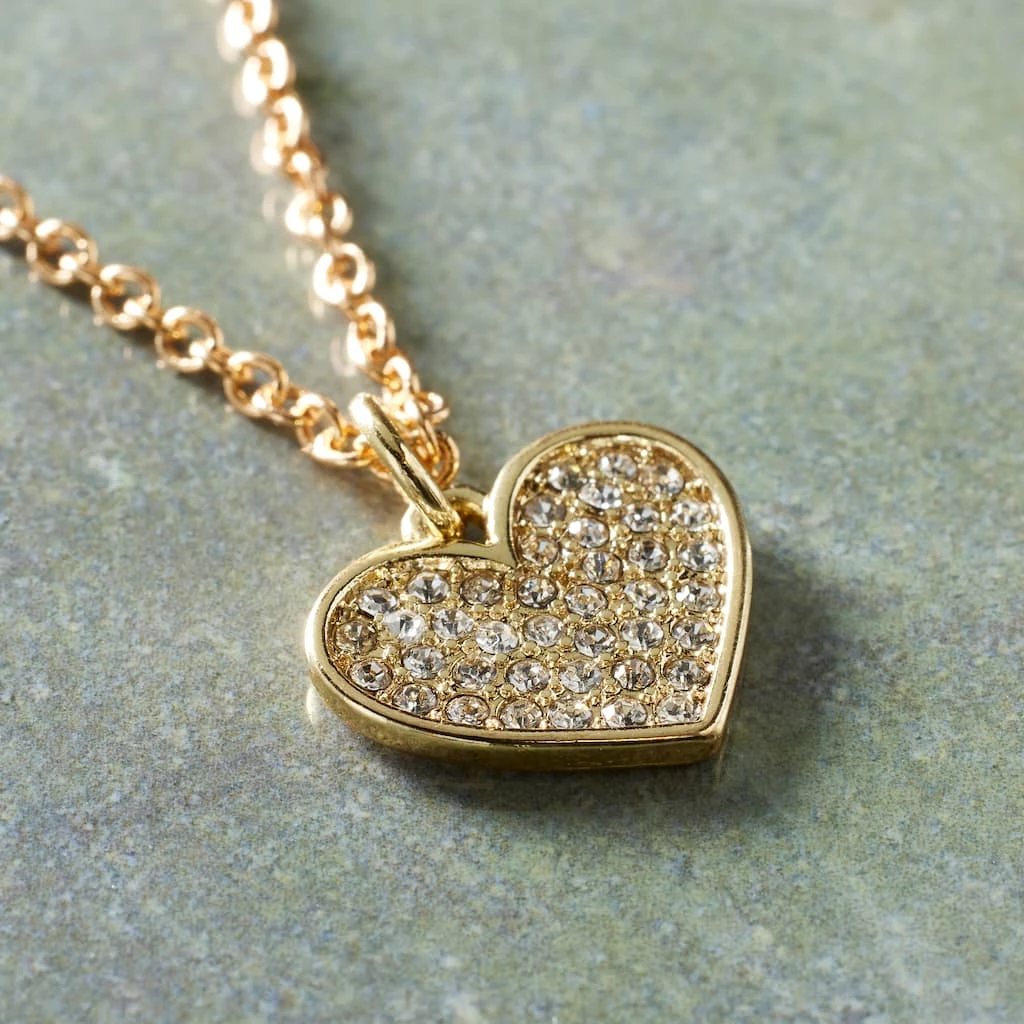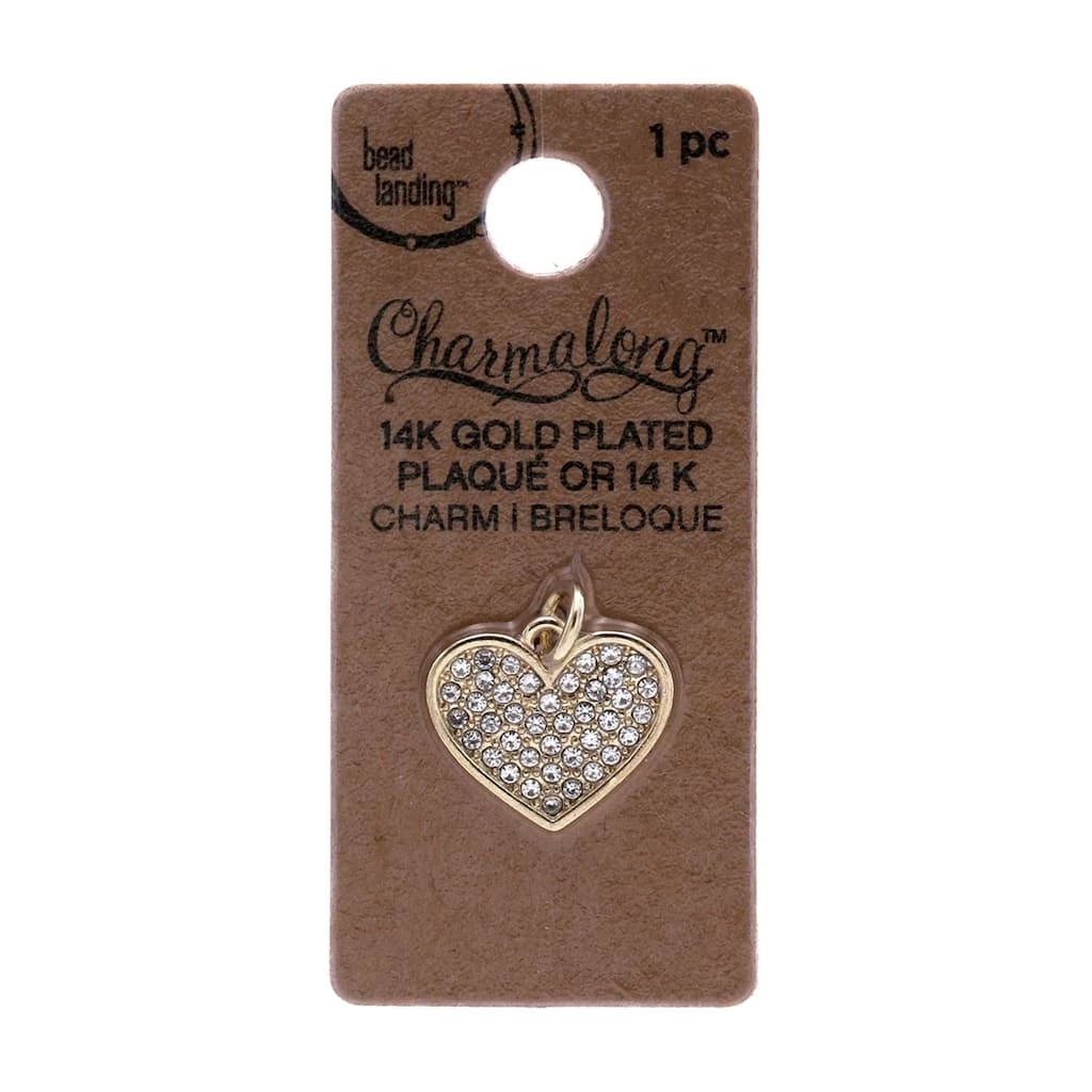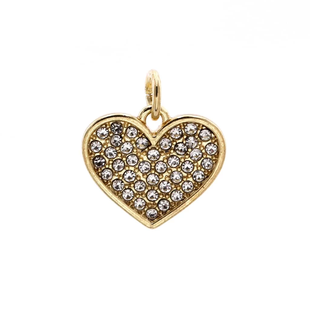 This gorgeous gold pavé heart is just what you need to craft a glamorous necklace or bracelet. Pair the finished project with other stunning accessories and a stylish ensemble for the perfect look.