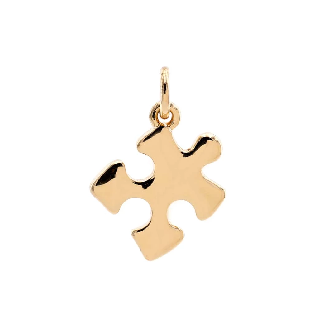Design a necklace with this 14K gold plated puzzle charm. This charm can also be connected to a bracelet or keychain.