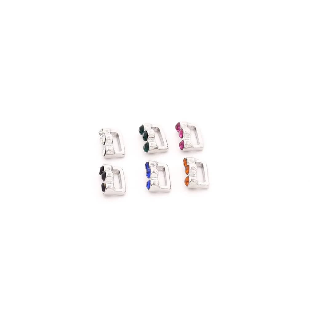 These 3-row colorful crystal accents on silver colored slider charms will be a stunning addition to your jewelry collection. Slide these colorful spacers on a Charmalong leather band to create a fun accessory. You can combine with other spacers and charms to make a bold statement piece.