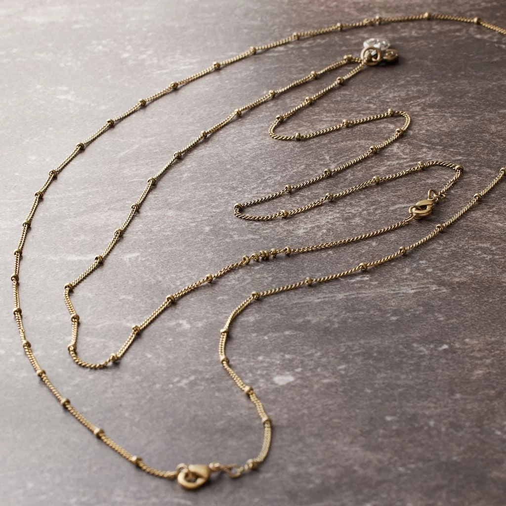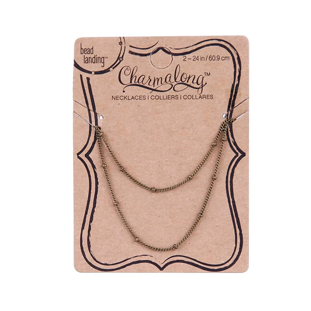 These stylish Charmalong™ Brass-Plated Chain Necklaces by Bead Landing™ have small brass-plated beads at intervals along the chain. Wear as is, or add a pendant to each necklace.