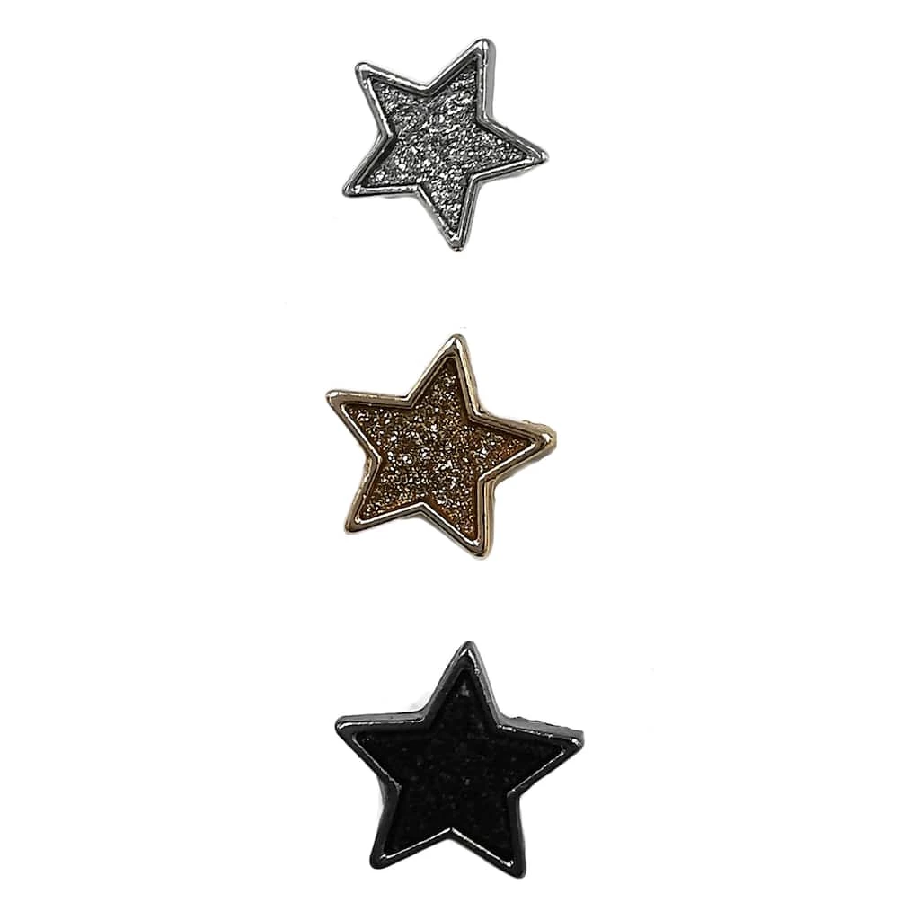 These gold, silver and black colored with glitter star slider charms will be a stunning addition to your jewelry collection. Slide these star charms on a Charmalong leather band to create a fun accessory. You can combine with other spacers and charms to make a bold statement piece.