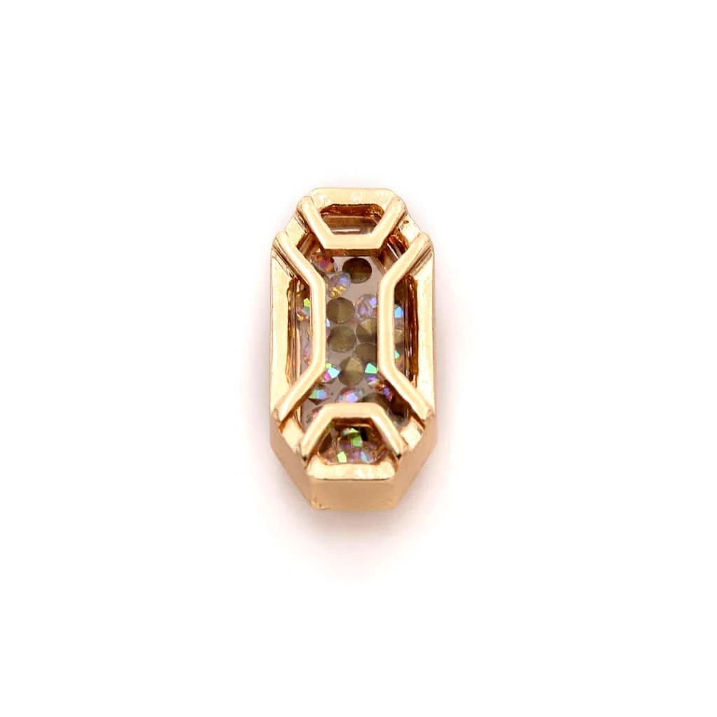 This gold colored with clear gem accents inside the slider charm will be a stunning addition to your jewelry collection. Slide this AB Octagon charm on a Charmalong leather band to create a fun accessory. You can combine with other spacers and charms to make a bold statement piece.