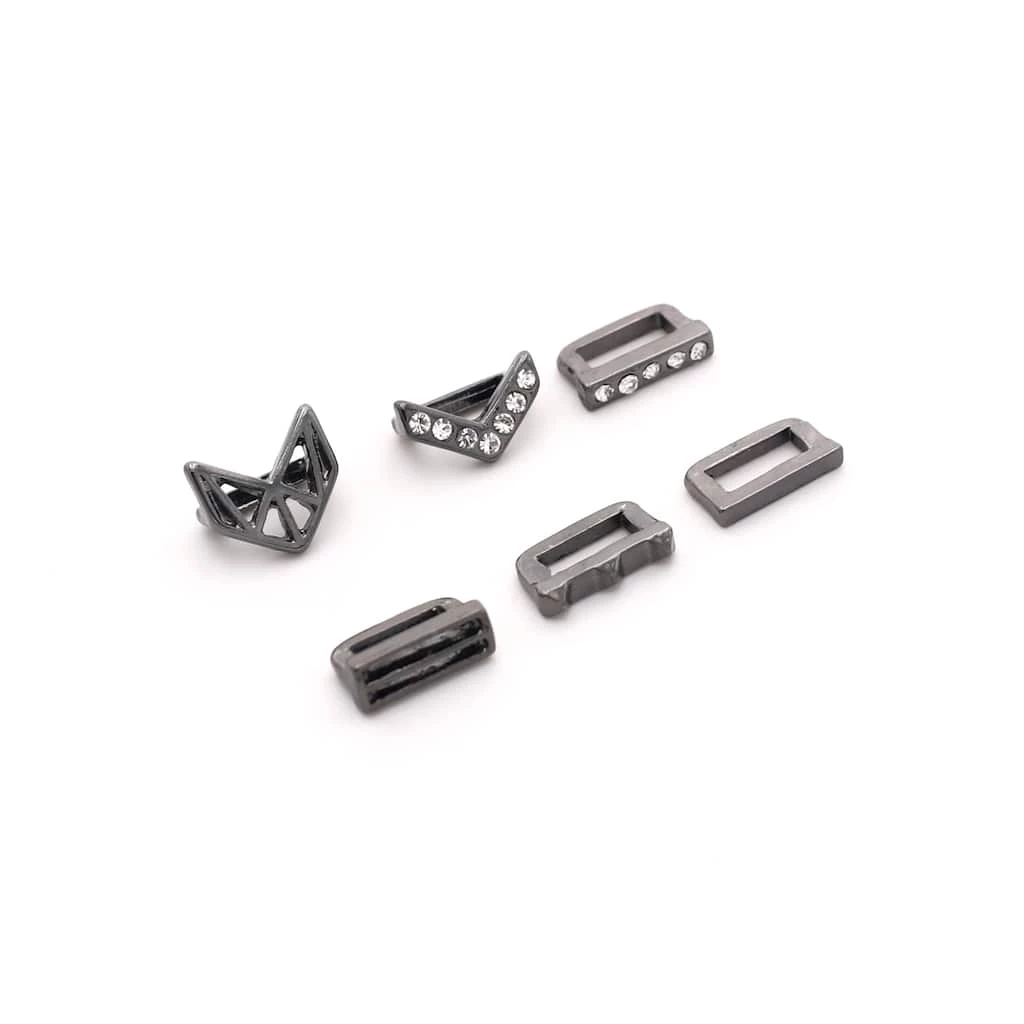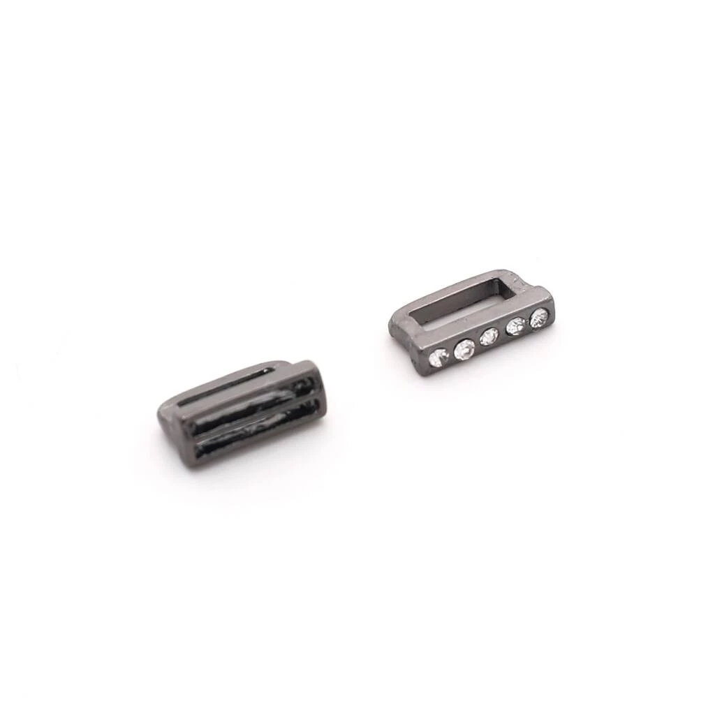 These gunmetal spacer slider charms will be a stunning addition to your jewelry collection. Slide these gunmetal colored spacers on a Charmalong leather band to create a fun accessory. You can combine with other spacers and charms to make a bold statement piece.