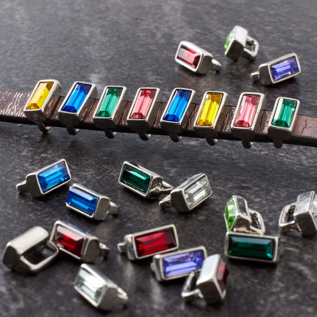 These multicolored spacer slider charms will be a stunning addition to your jewelry collection. Slide these multicolored spacers on a Charmalong leather band to create a fun accessory. You can combine with other spacers and charms to make a bold statement piece.