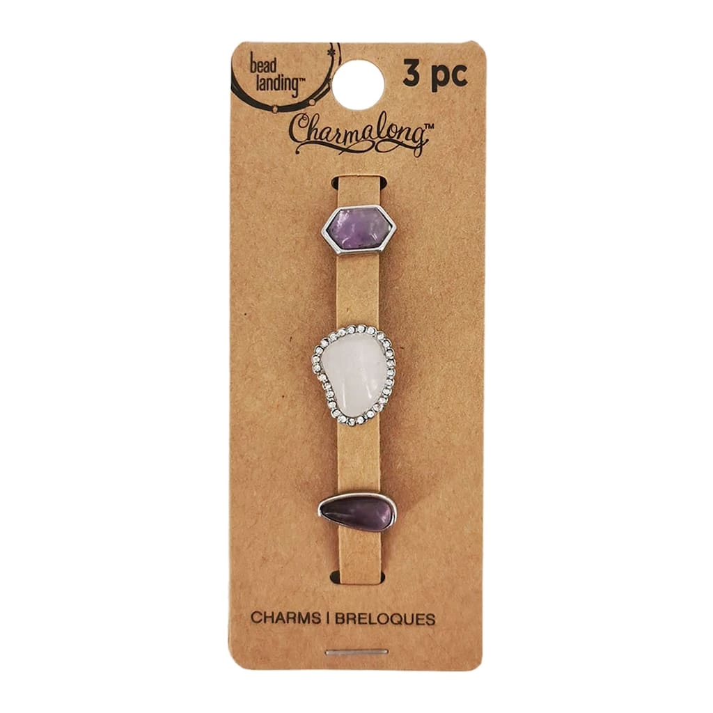 These purple shades of stone slider charms will be a stunning addition to your jewelry collection. Slide these purple charms on a Charmalong leather band to create a fun accessory. You can combine with other spacers and charms to make a bold statement piece.