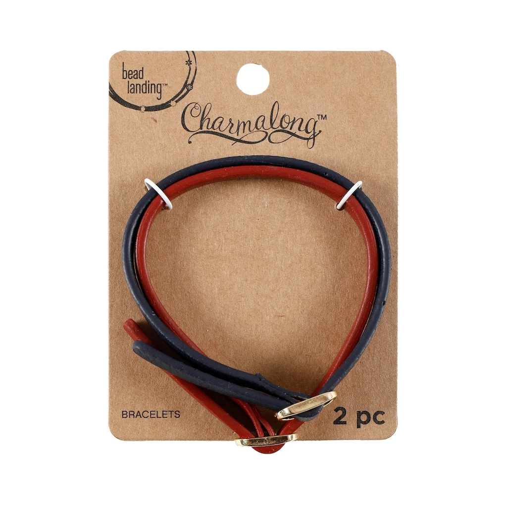 These red and black colored slider bracelets will be an added addition to your jewelry collection. Slide yourΒ Charmalong charms and bands onto this bracelet for a fun personalized accessory piece. You can combine with other spacers and charms to make a bold statement piece.
