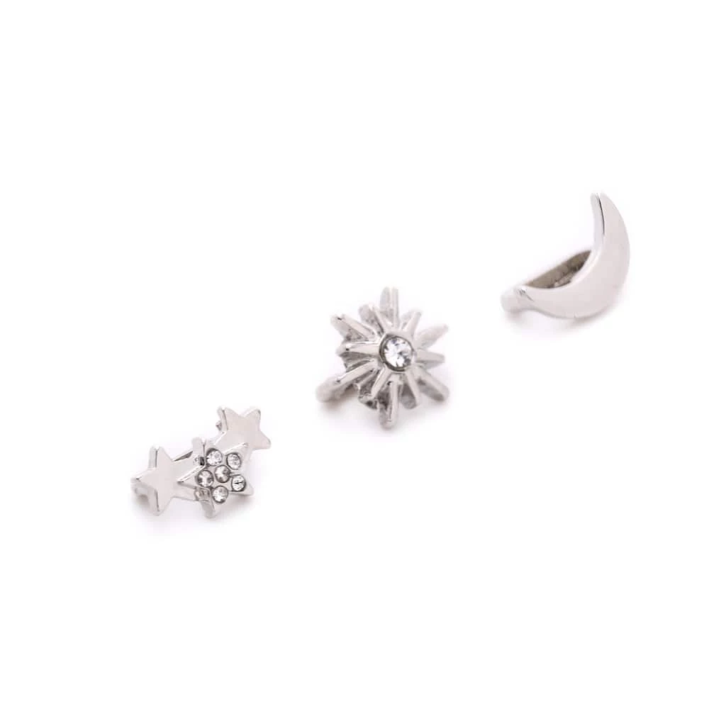 These clear accents with rhodium moon, sun and star shaped slider charms will be a stunning addition to your jewelry collection. Slide these nature-lover charms on a Charmalong leather band to create a fun accessory. You can combine with other spacers and charms to make a bold statement piece.