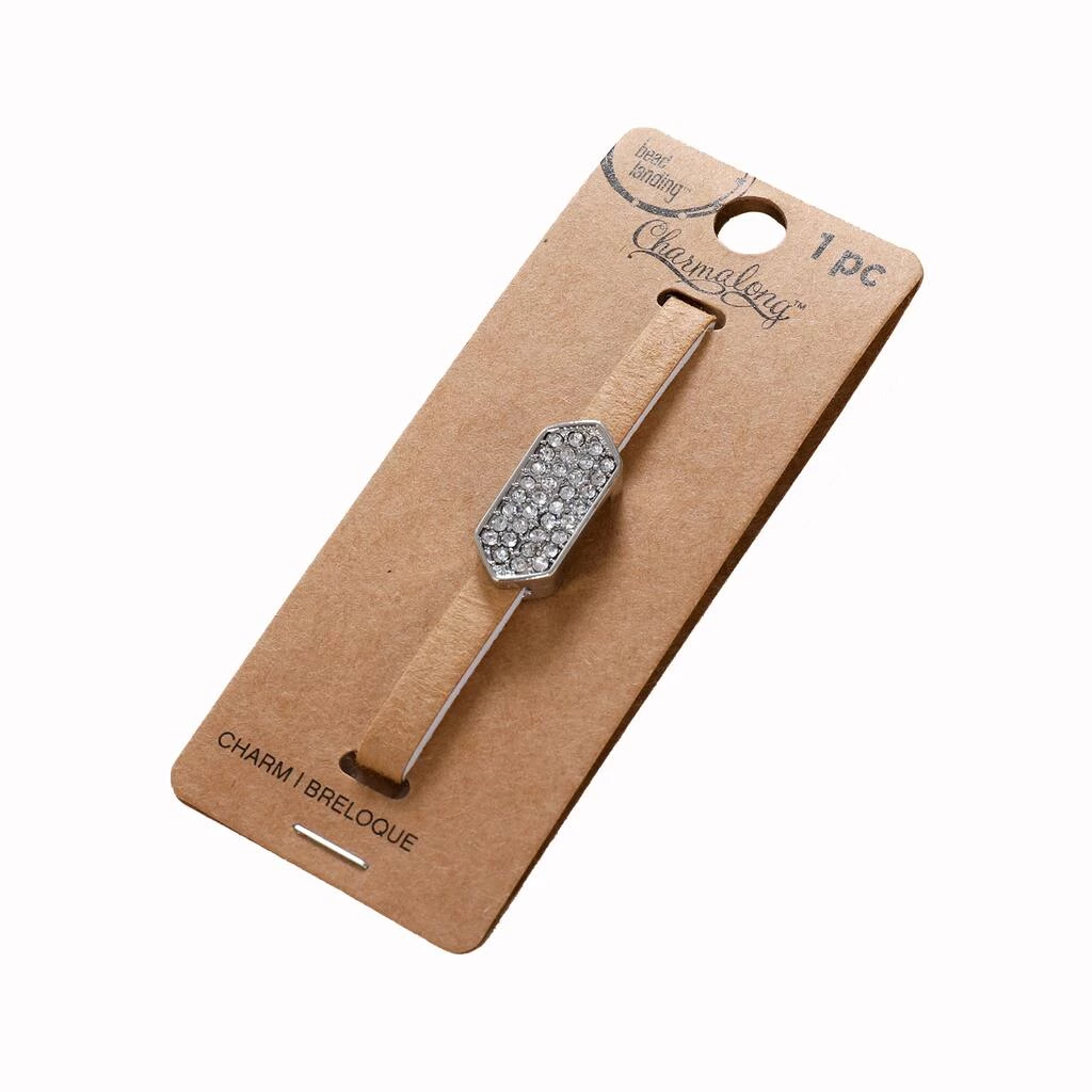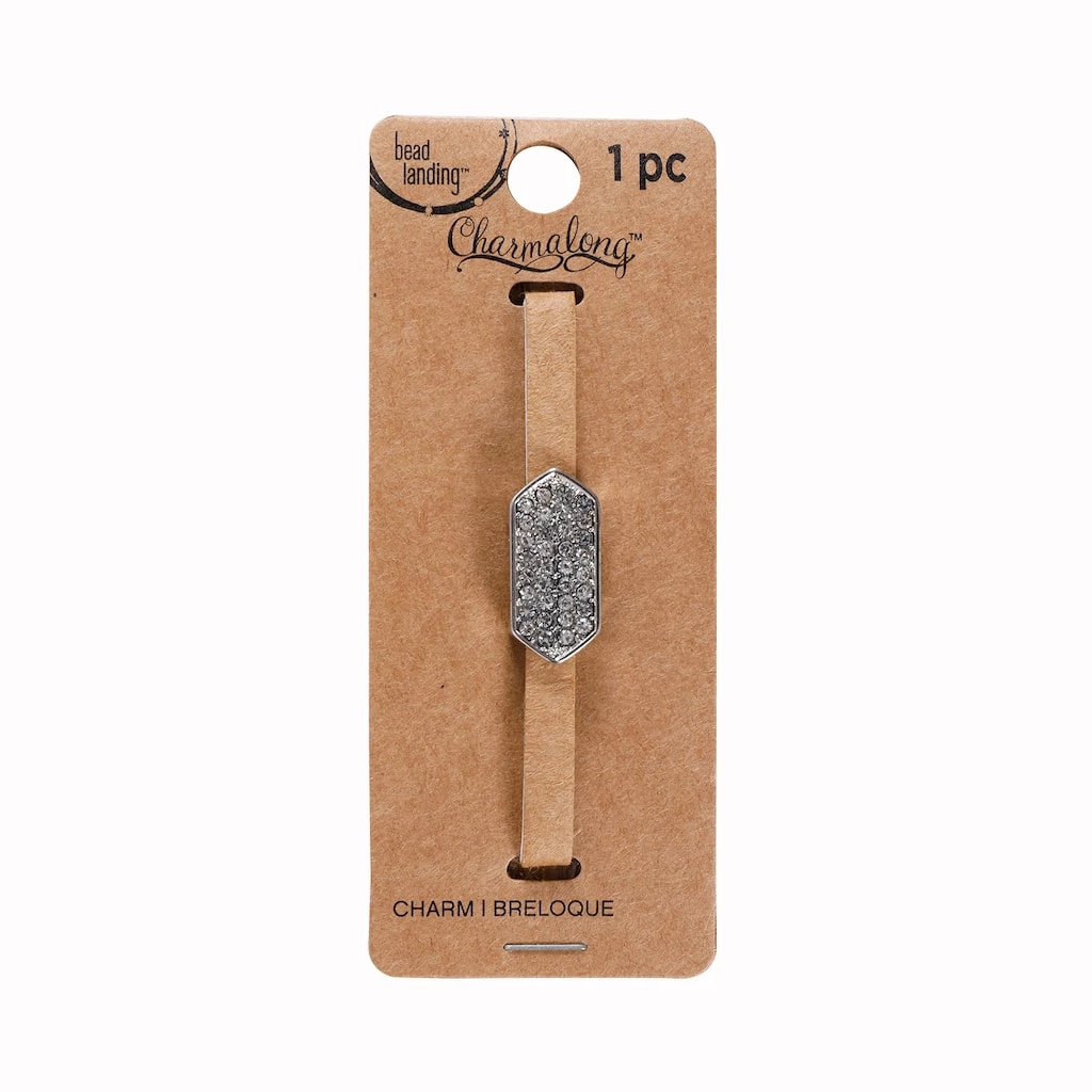 This silver hexagon with crystal accents charm will be a stunning addition to your jewelry collection. Slide this hexagon charm on a Charmalong leather band to create a fun accessory. You can combine with other spacers and charms to make a bold statement piece.