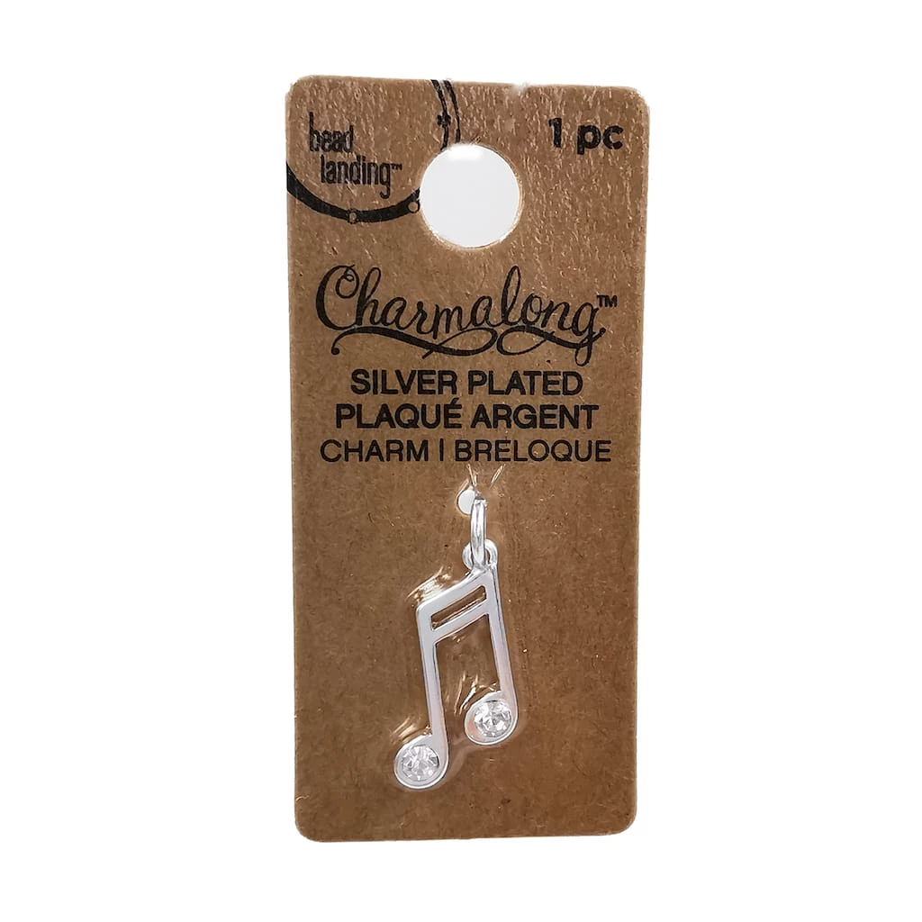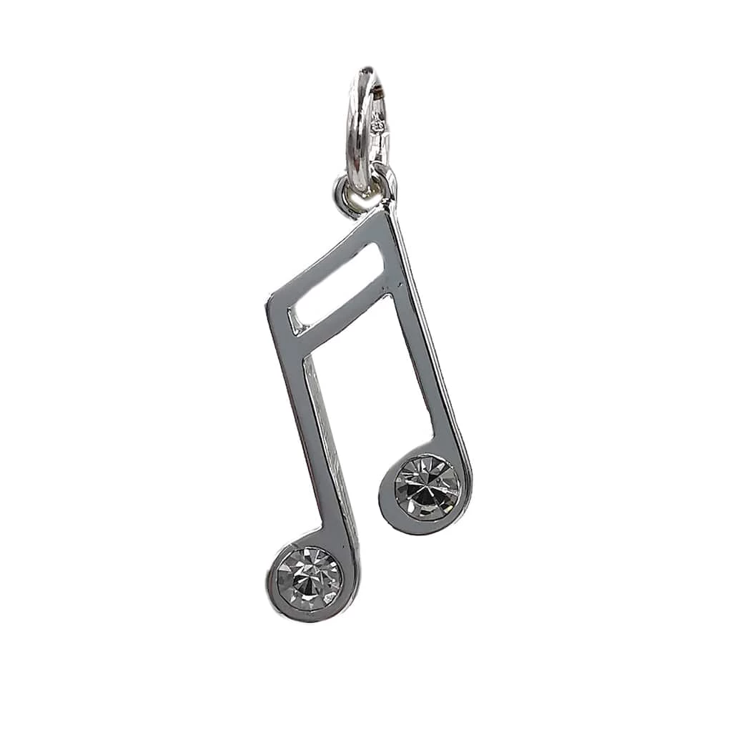 Design a necklace with this silver plated music charm. This music note symbol charm features eye catching crystals. You can also connect this charm to a bracelet or keychain.