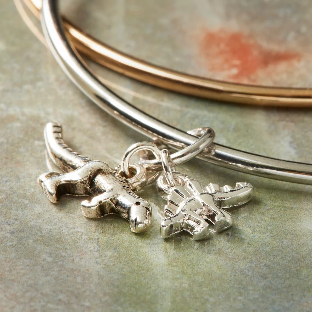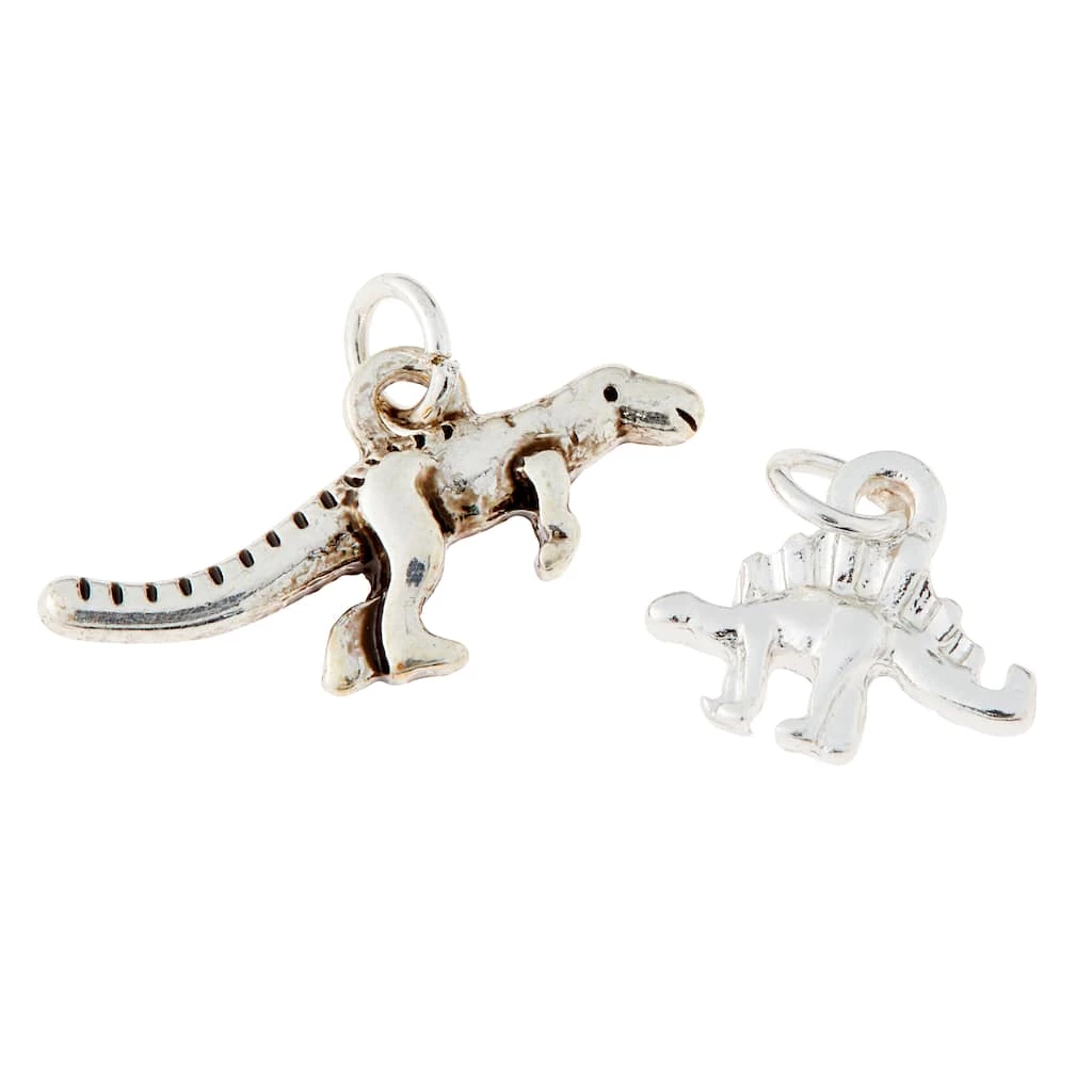 These silver plated dinosaur shaped charms will be a stunning addition to your jewelry collection. Slide these silver plated charms on a Charmalong leather band to create a fun accessory. You can combine with other spacers and charms to make a bold statement piece.