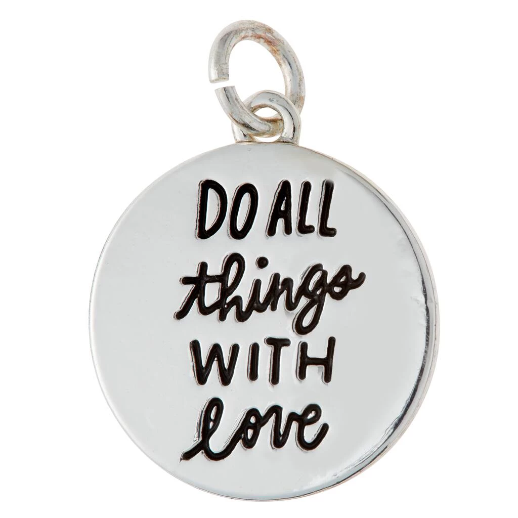 Design a beautiful, yet simple necklace or bracelet with this silver, “Do All Things with Love” charm. Team the finished project with other stylish accessories to complete your outfit of the day.