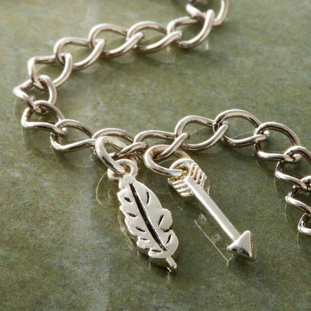 These silver plated leaf and arrow charms will be a stunning addition to your jewelry collection. Place these silver plated charms on a Charmalong bracelet to create a fun accessory. You can combine with other spacers and charms to make a bold statement piece.