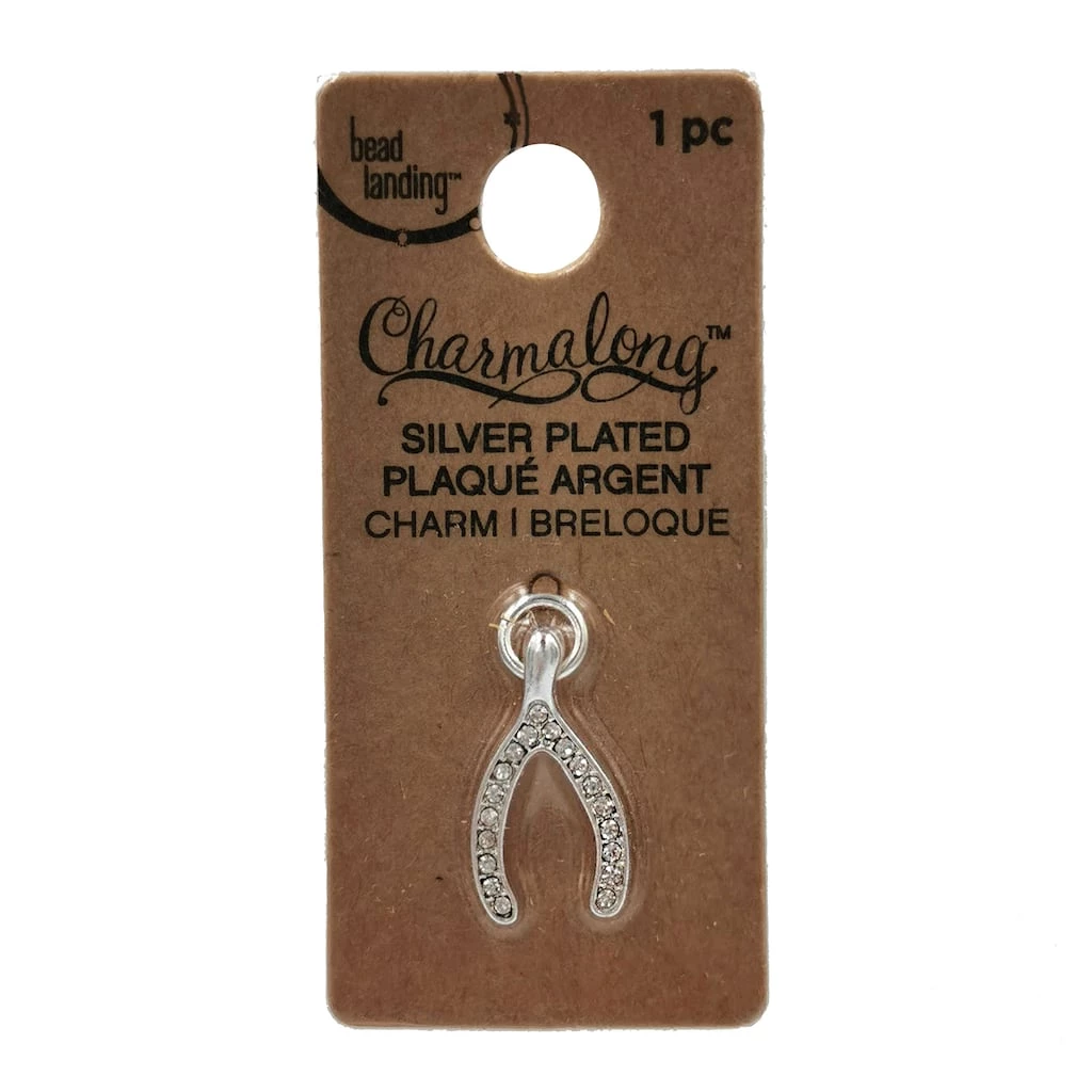 Add good luck to your favorite jewelry with this silver pavé wishbone charm by Bead Landing. String it onto a chain or bracelet to personalize your unique style.