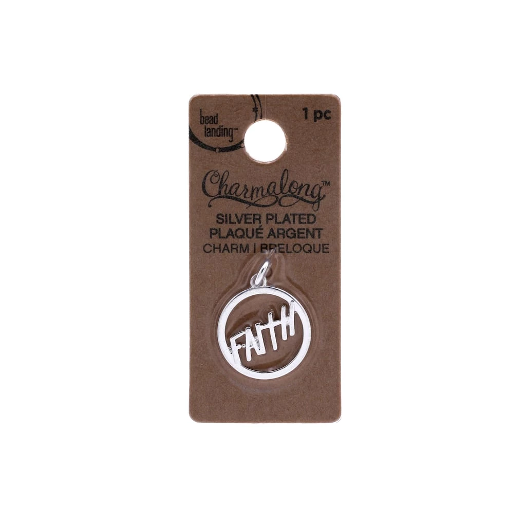 This round faith charm is the perfect addition to your jewelry crafting kit. The silver finish will shine on your next charm bracelet project.
