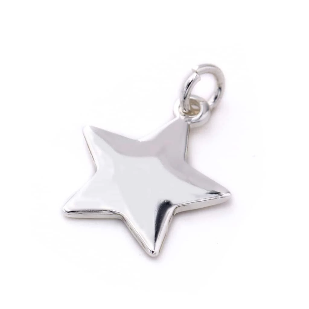 Create a stunning necklace with this silver plated star. This charm can also be used for other jewelry types and keychains.